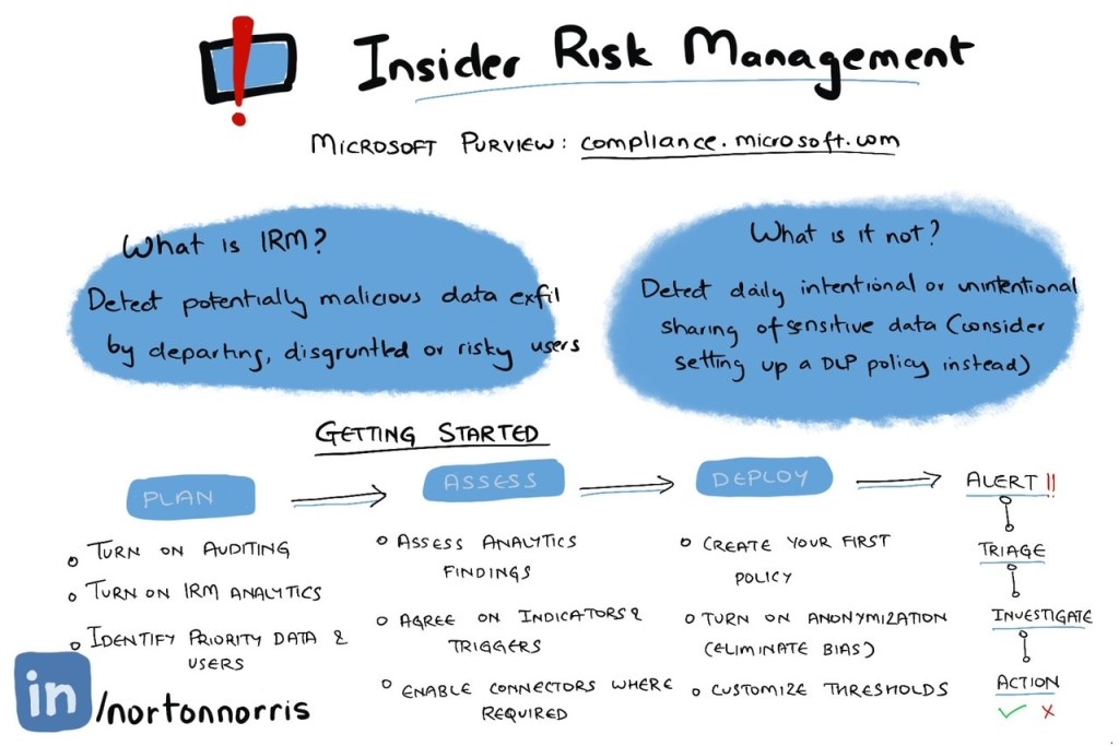 A while ago, I created a graphic on Insider Risk Management, one of the solutions in Microsoft Purview. This blog post adds a bit of context to that graphic.